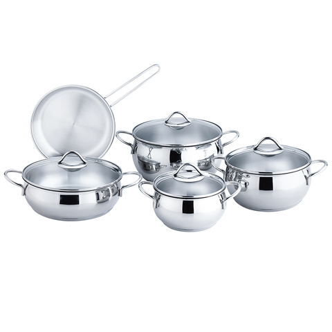 Herstellung Langlebiges 9-teiliges Edelstahl-Topfset Bestes Kochgeschirrset Antihaft-Kochgeschirrset mit Deckel